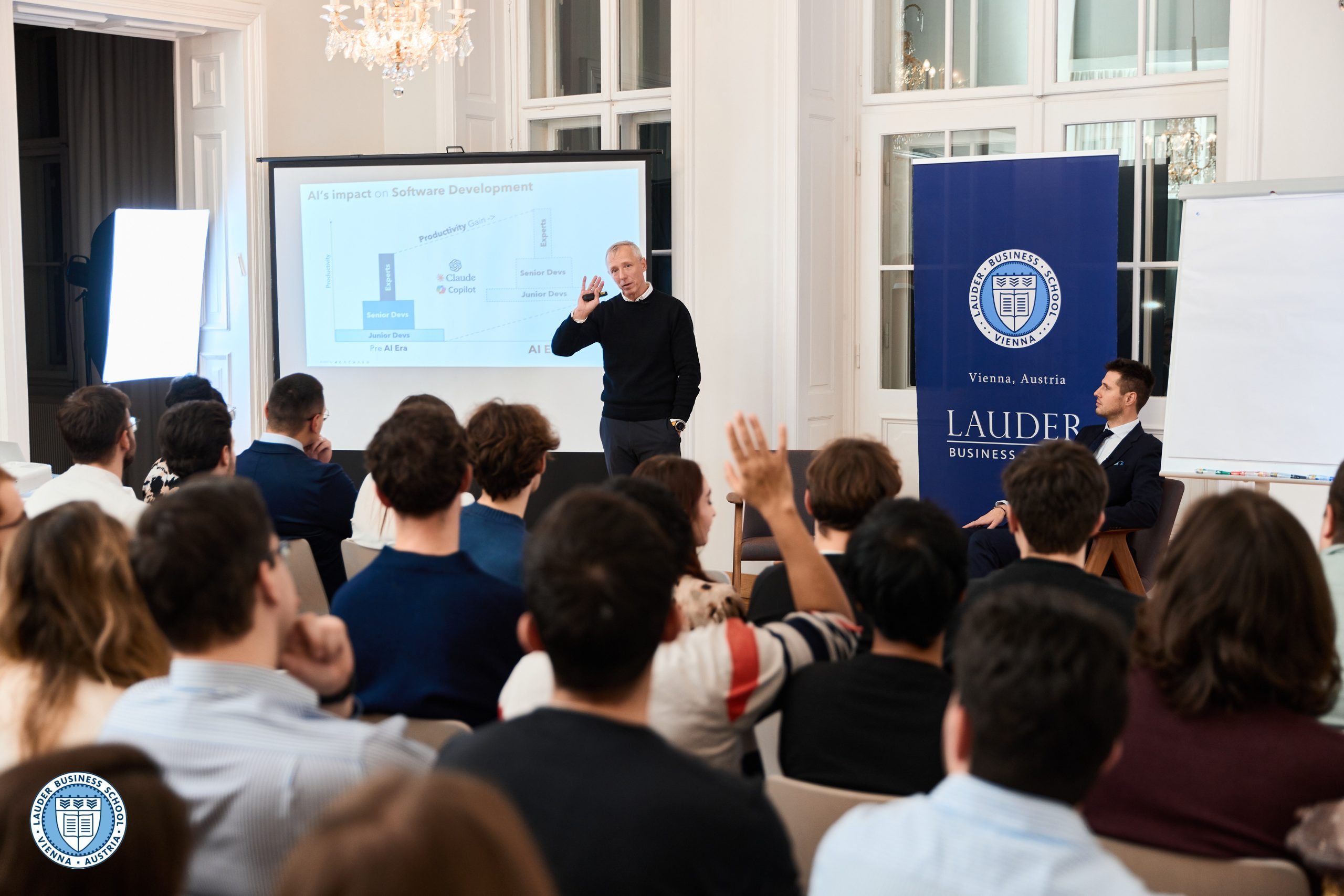 On December 4th, Lauder Business School had the privilege of welcoming Wolfgang Platz, founder of Tricentis and Katharo Ventures, one of Austria’s most influential tech entrepreneurs. In an inspiring Fireplace Talk, Mr. Platz walked students through his journey—starting as a young physicist-turned-software-developer, becoming the architect of a new paradigm in test automation, and eventually building Austria’s first unicorn.