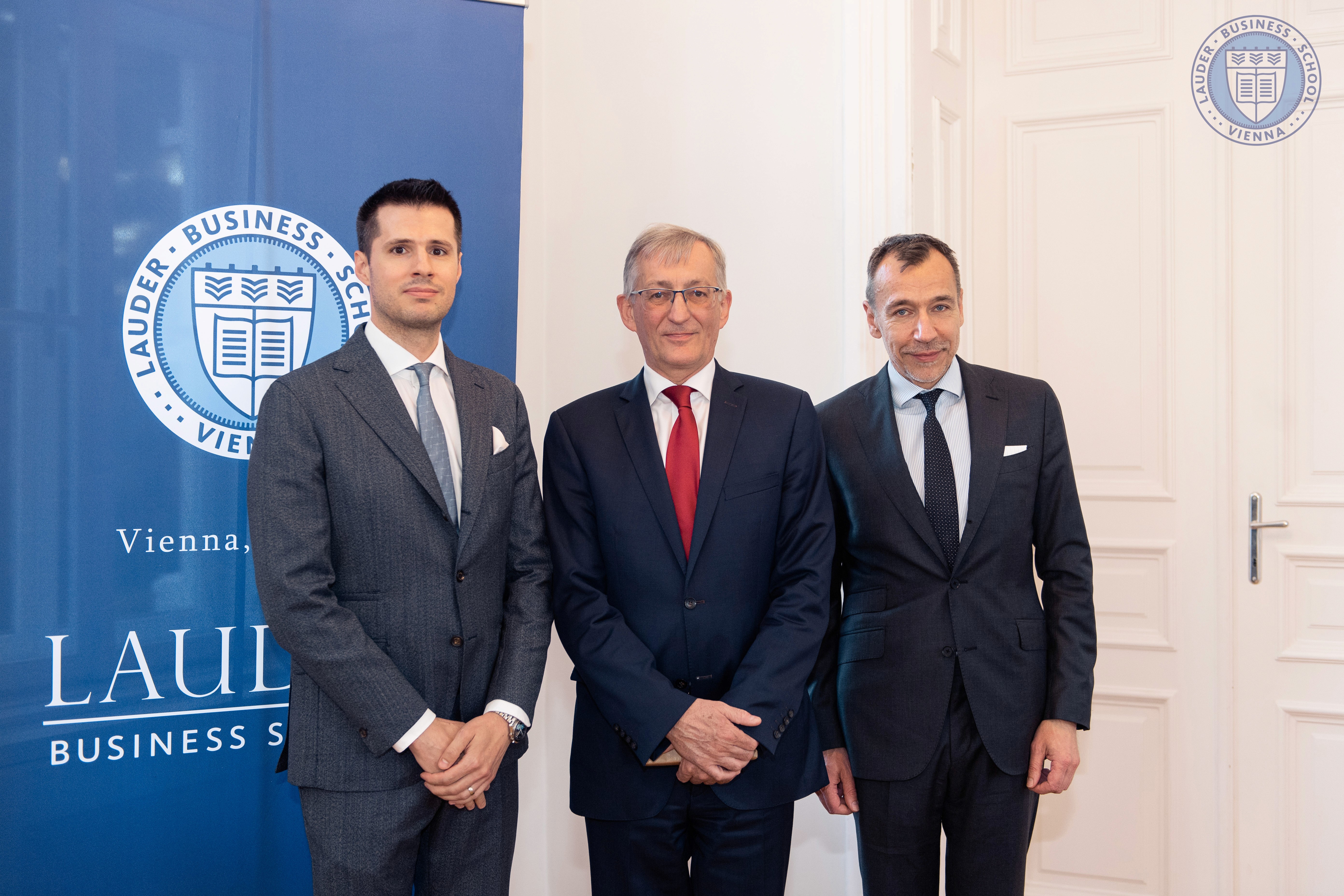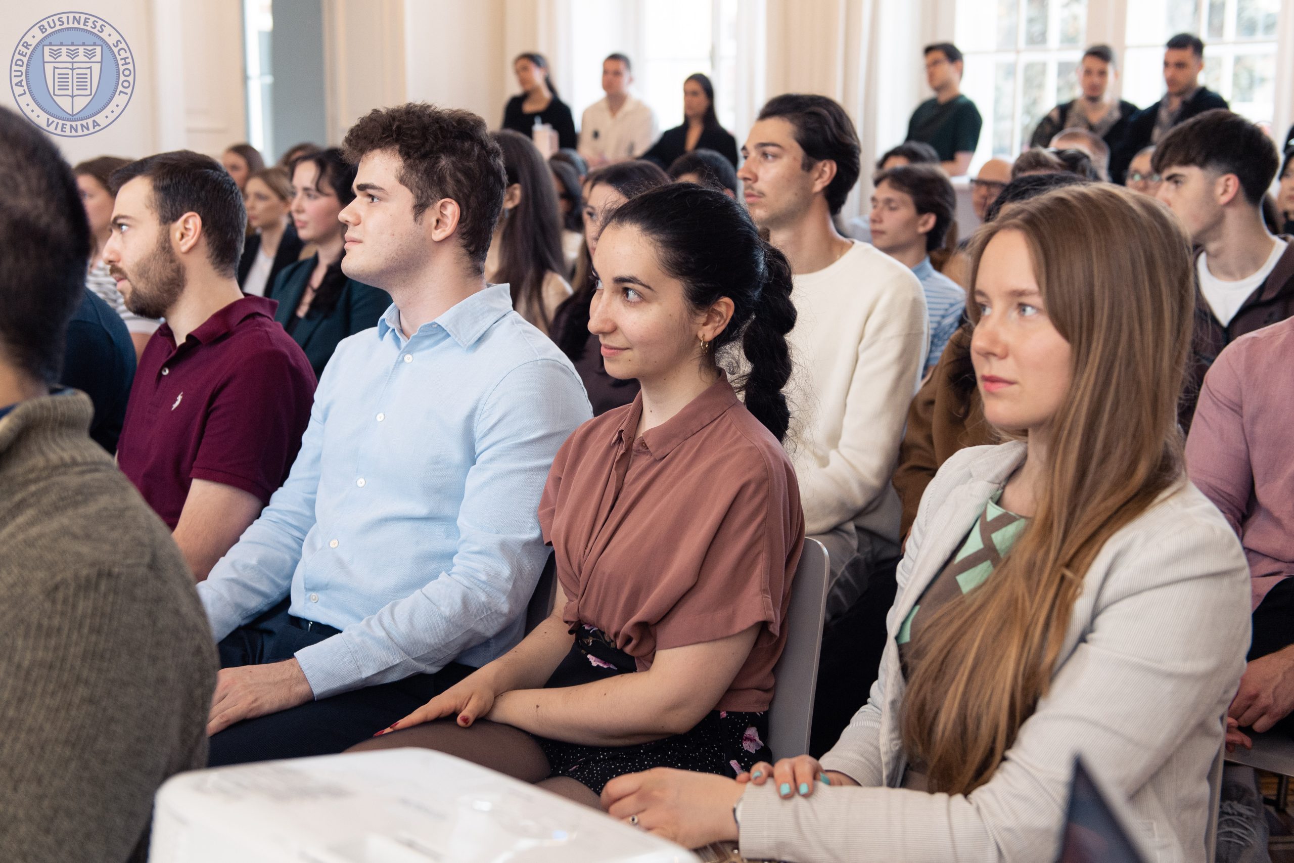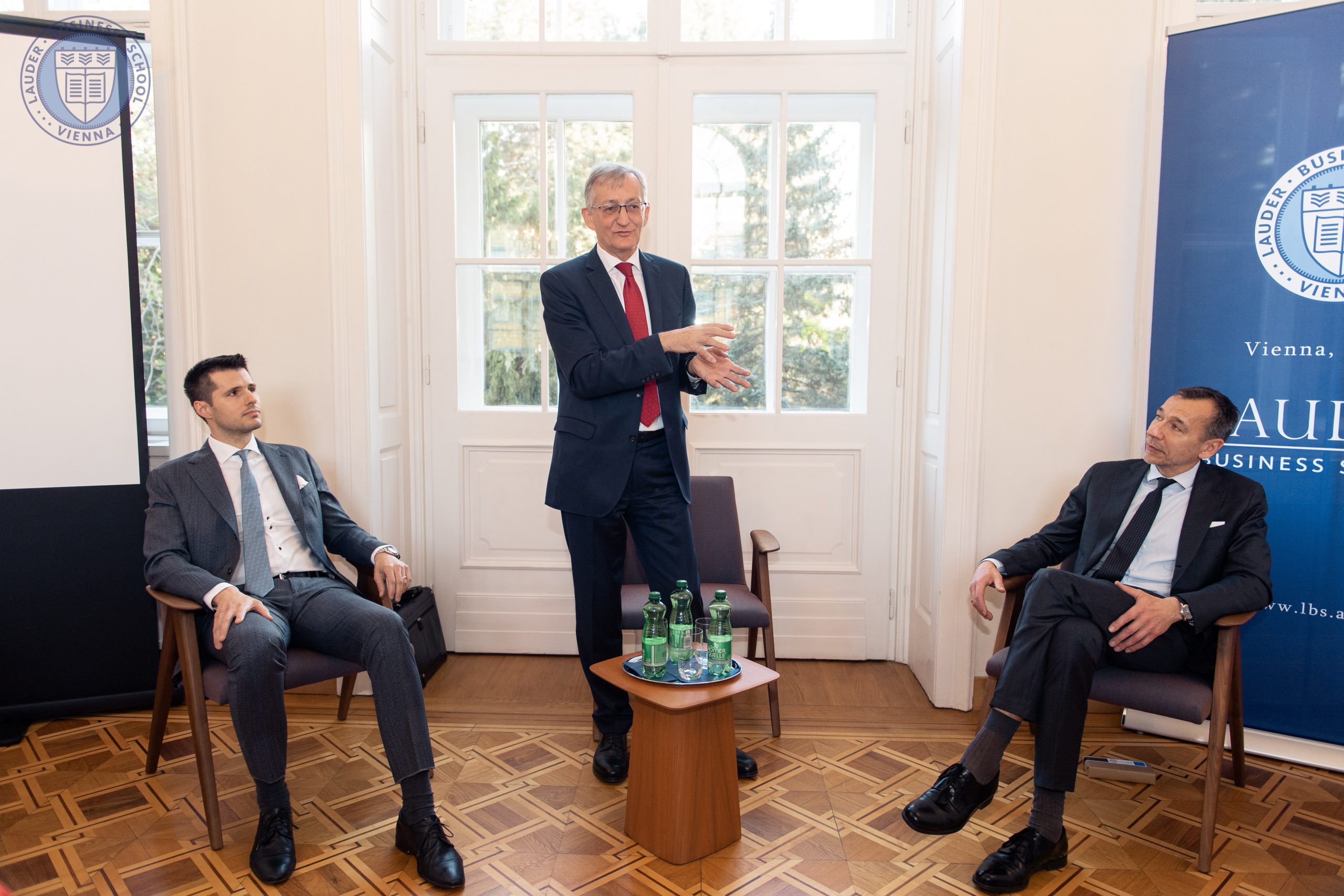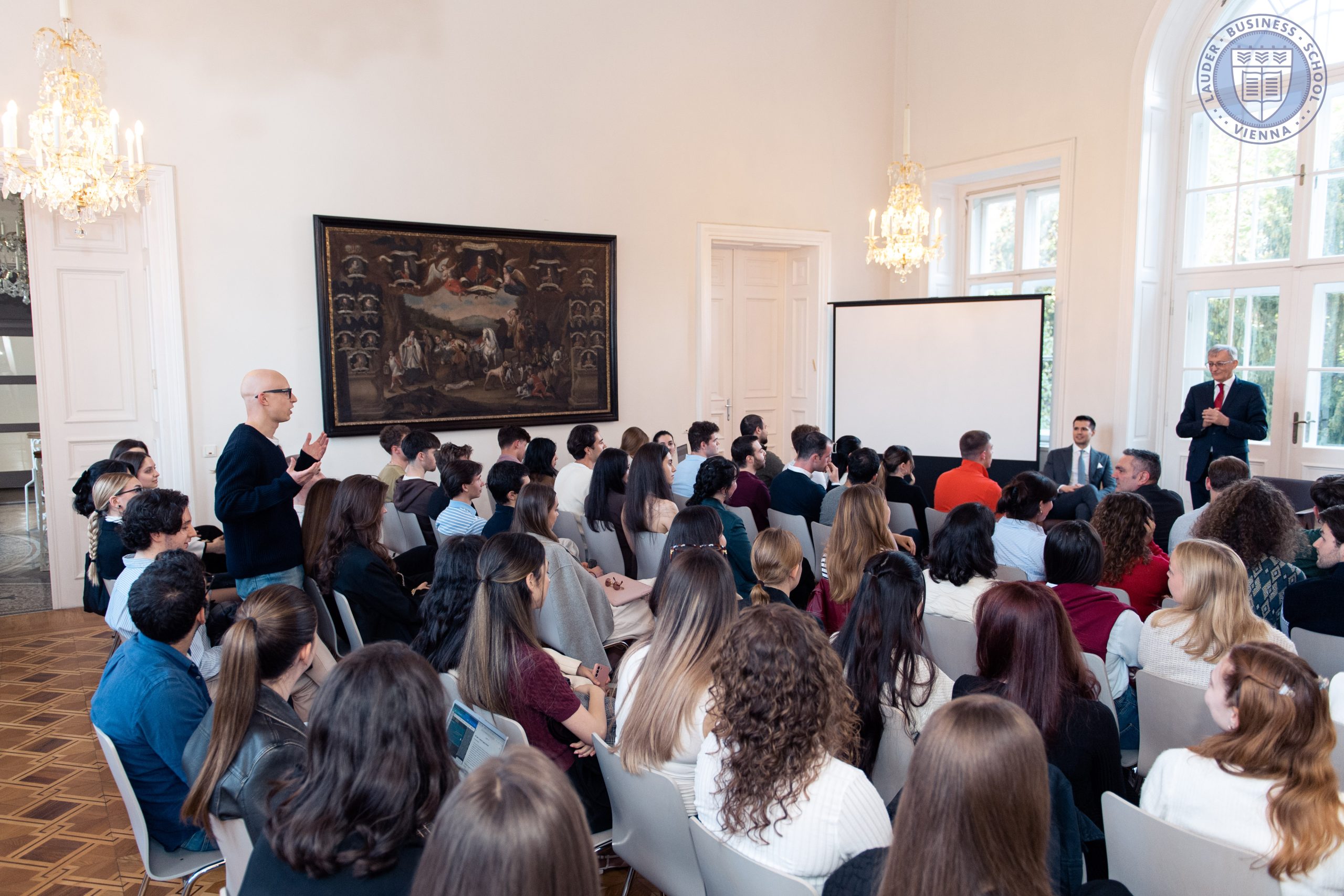Last night, Lauder Business School hosted a Fireplace Talk that featured Johannes Koller, the Managing Director, Head of Investment Solutions & Services at Unicredit Bank Austria and Schoellerbank, as a guest speaker. The question-and-answer session between Mr. Koller and the LBS students covered our speaker´s multifaceted career in engineering, the military, banking, and finance, discussing career development, the future of finance in light of digitalization and AI, necessary skills (both hard and soft), and the significance of ESG risks in the financial sector. Mr. Koller highlighted the value of university education as a practice ground and offered perspectives on gender disparities in the workplace.
