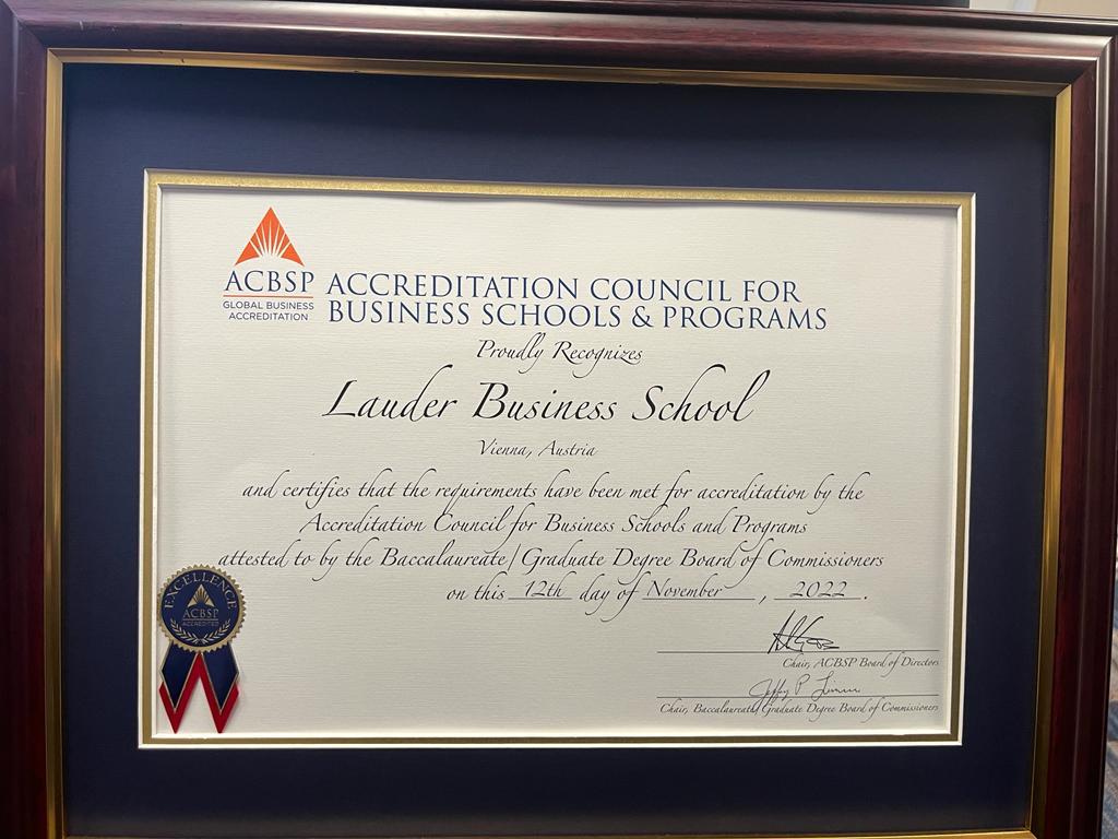 Ms. Birgit Wakonig, BSc, MSc, Quality Manager at LBS, the driving force in the accreditation process, expressed her gratitude stating, “Receiving the official Certificate of Accreditation from ACBSP is a significant milestone for Lauder Business School. It is a recognition of the hard work and commitment of our faculty, staff, and students in upholding the highest standards. This recognition reinforces our position as a leading institution in equipping students for successful careers in the competitive global business landscape.”