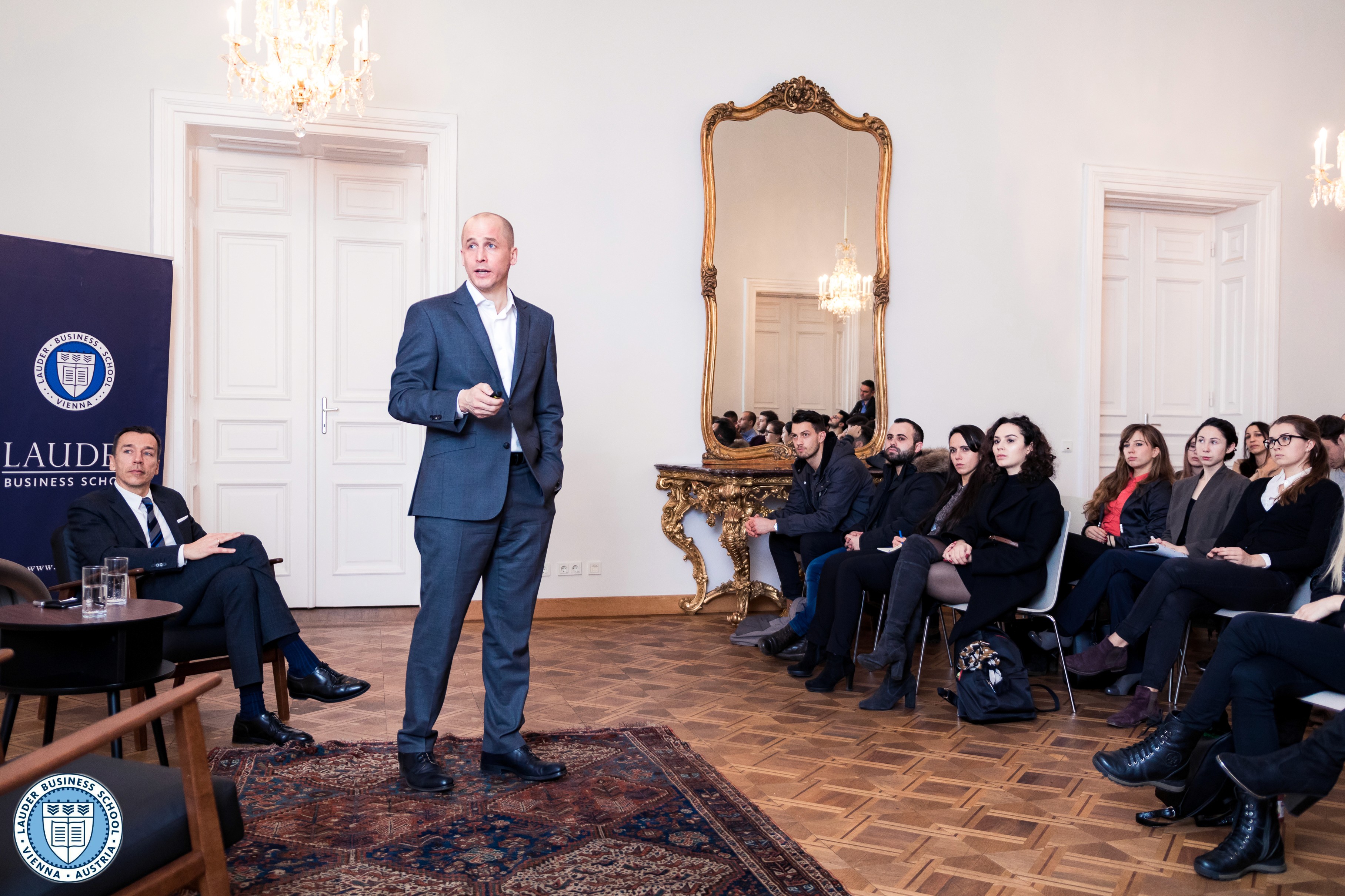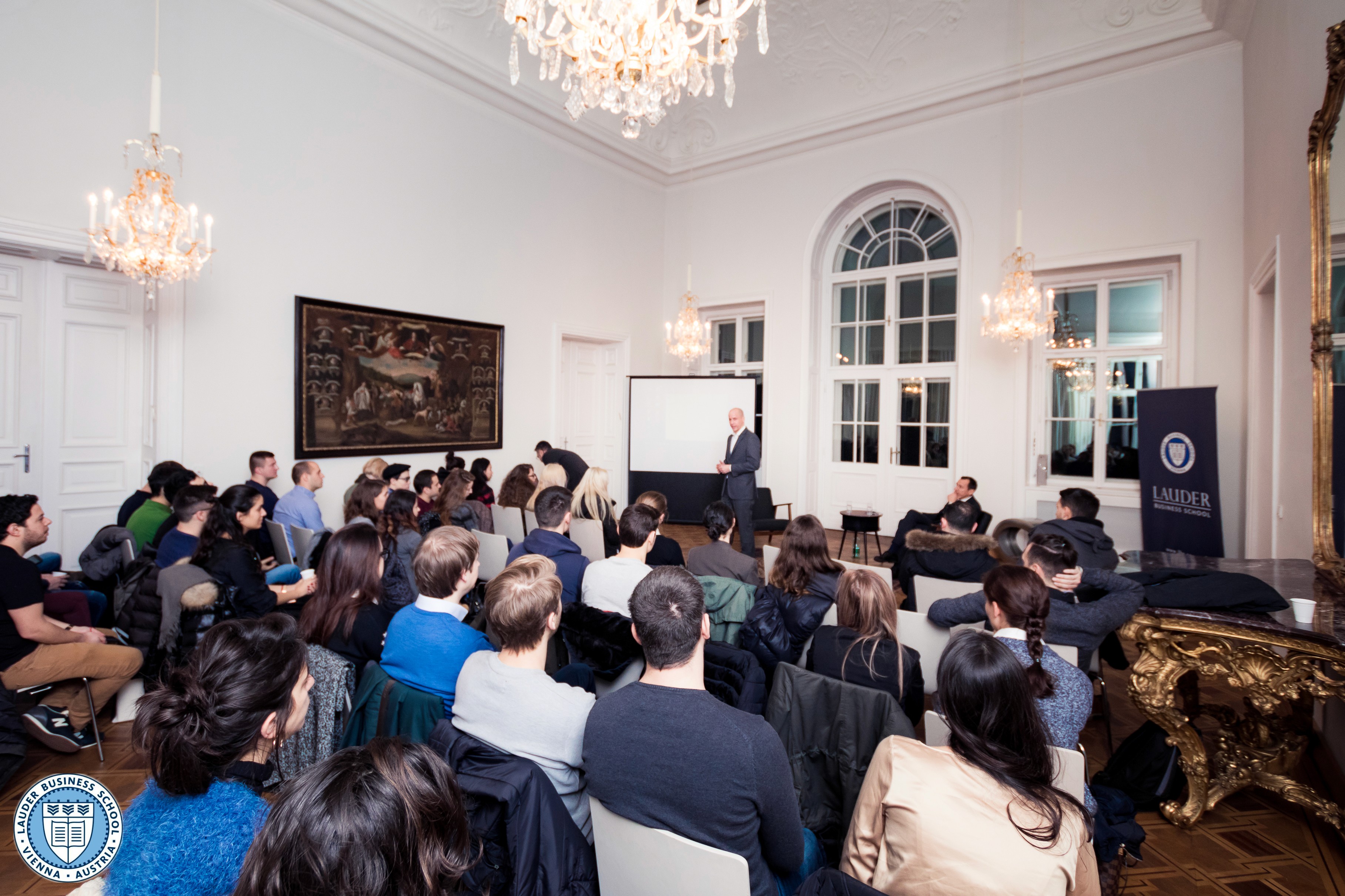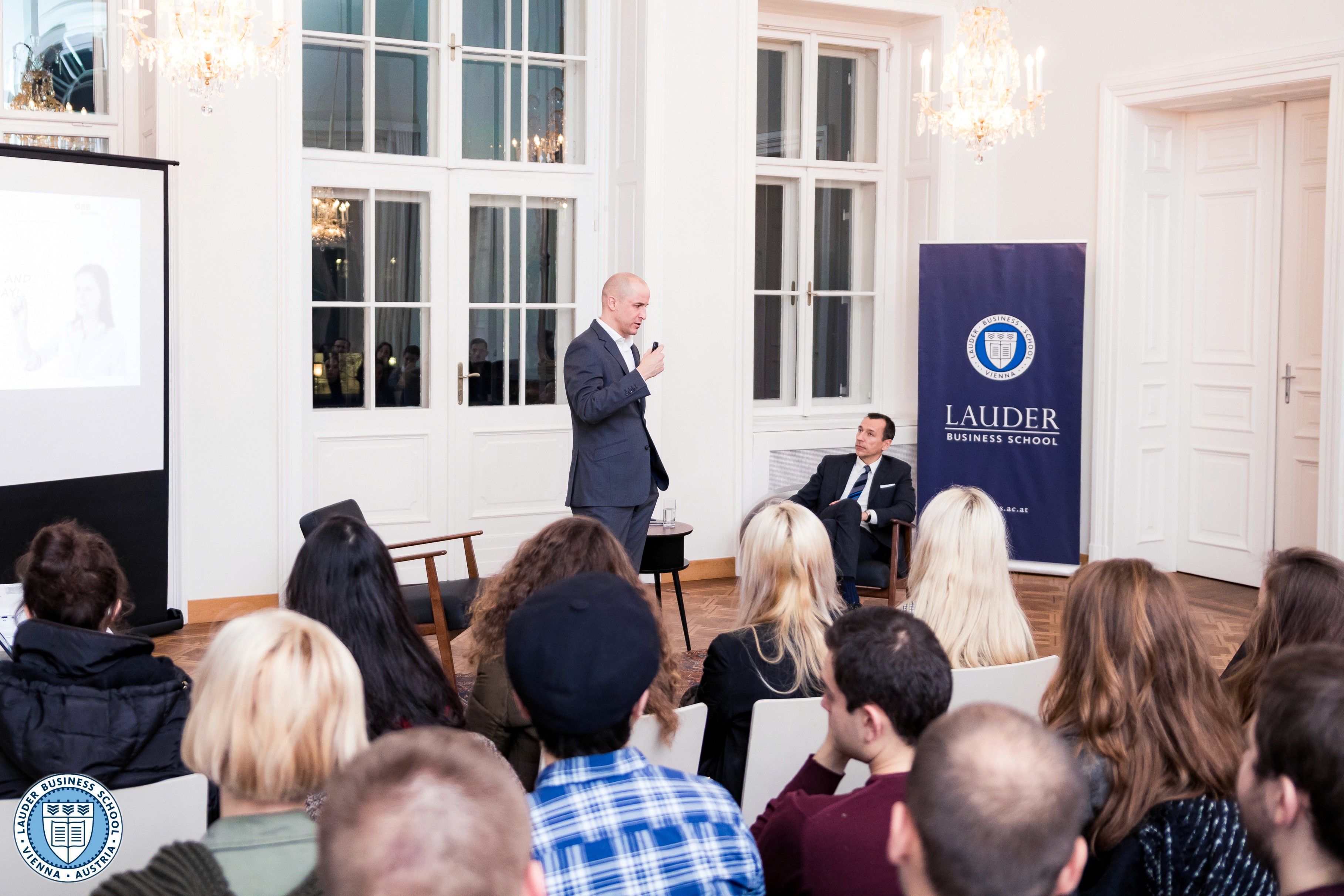 On December 11, 2017 the LBS Career Center organized a fireplace talk with the CEO of the ÖBB Rail Cargo Group Dr. Clemens Först and the Executive Director Mr. Alexander Zirkler. In an inspiring session, the LBS students, faculty and staff had the opportunity to gain insights into the ÖBB (Austrian Federal Railways) operations and strategy, as well as learn about the interesting career path of our renowned guest.